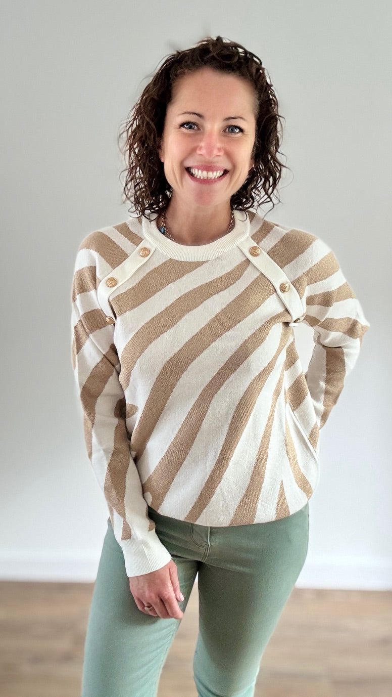 Pull Court Zébré Blanc & Doré