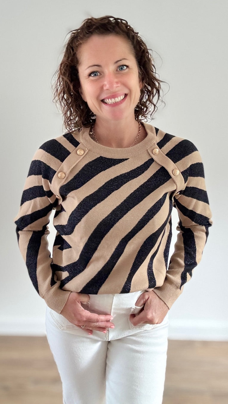 Pull Court Zébré Noir & Camel