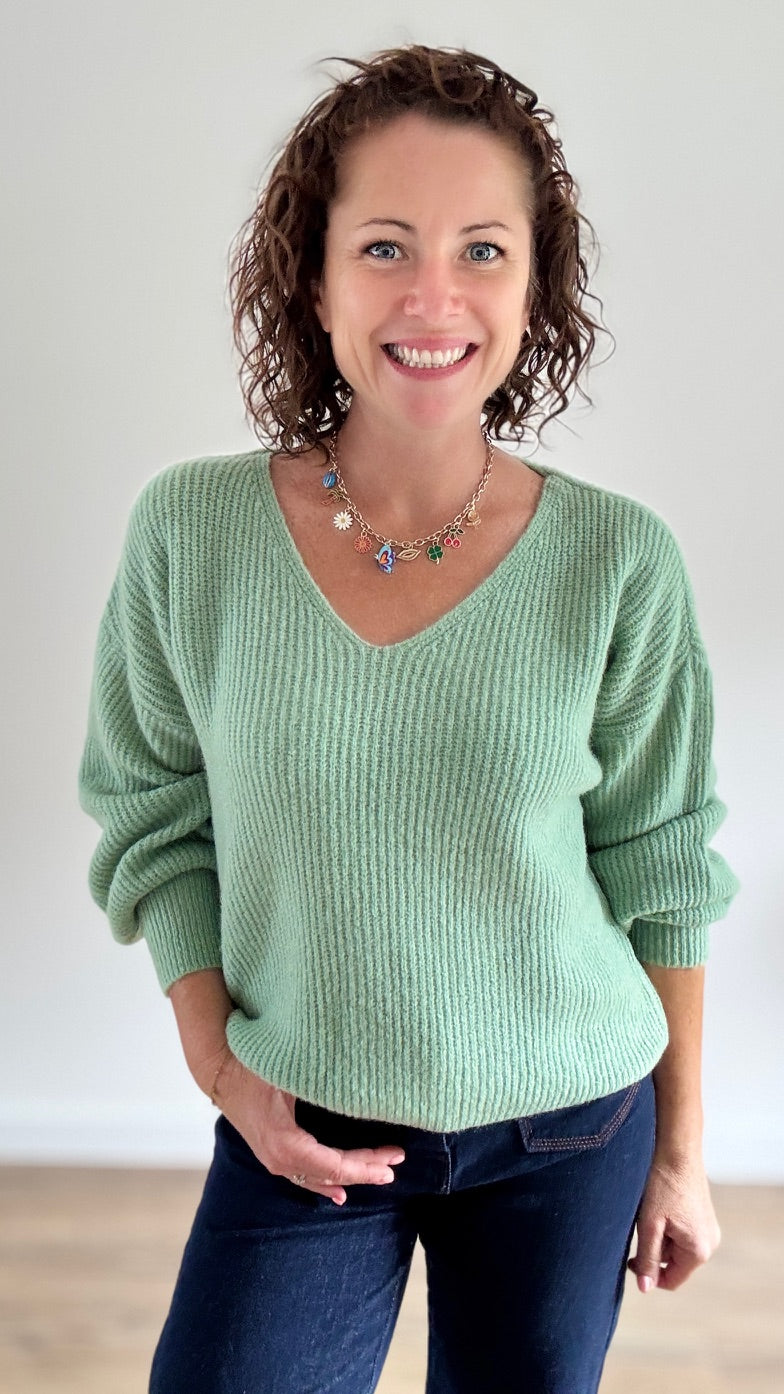 Pull court côtelé vert tendre