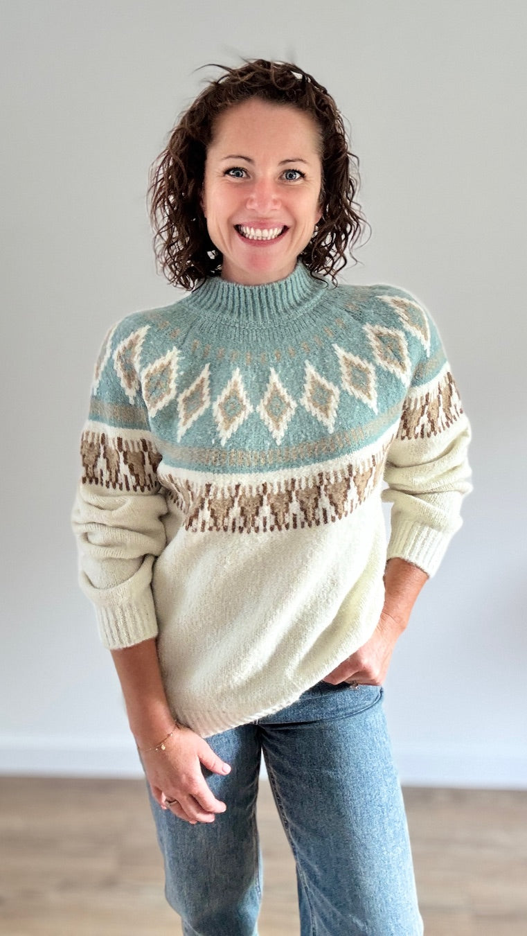 Pull imprimé losanges Vert d'eau