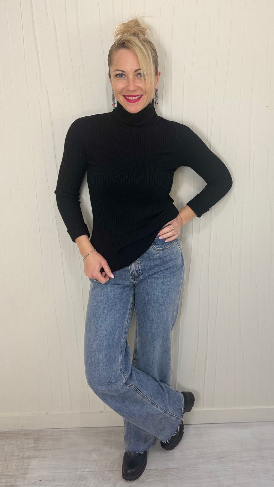 Pull fin col roulé noir