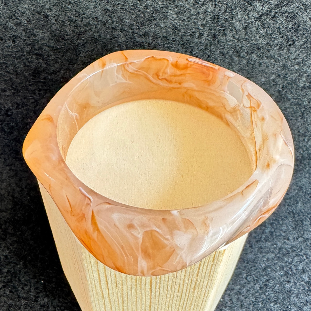 Intemporel et lumineux, ce bracelet jonc champagne nacré se distingue par sa forme épaisse et son fini brillant légèrement irisé, qui capte la lumière avec douceur et raffinement. Fabriqué en résine acrylique de haute qualité, il combine élégance et simplicité, pour un rendu chic et féminin.